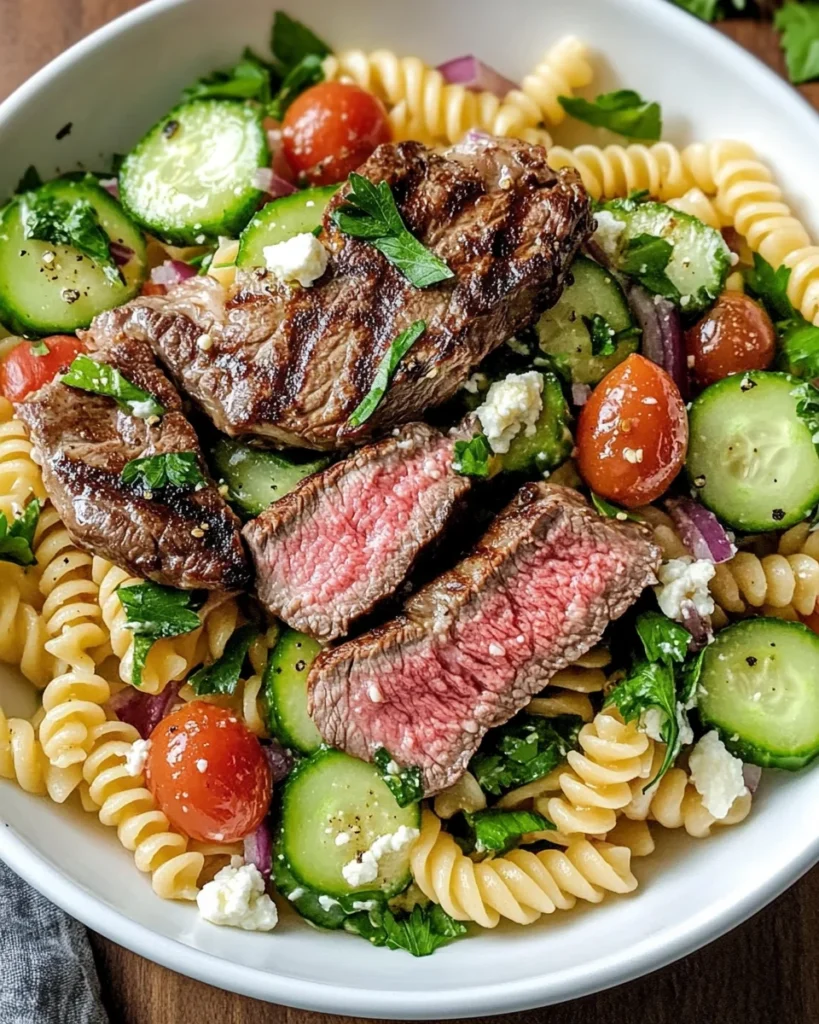 A refreshing and hearty steak pasta salad perfect for summer gatherings.