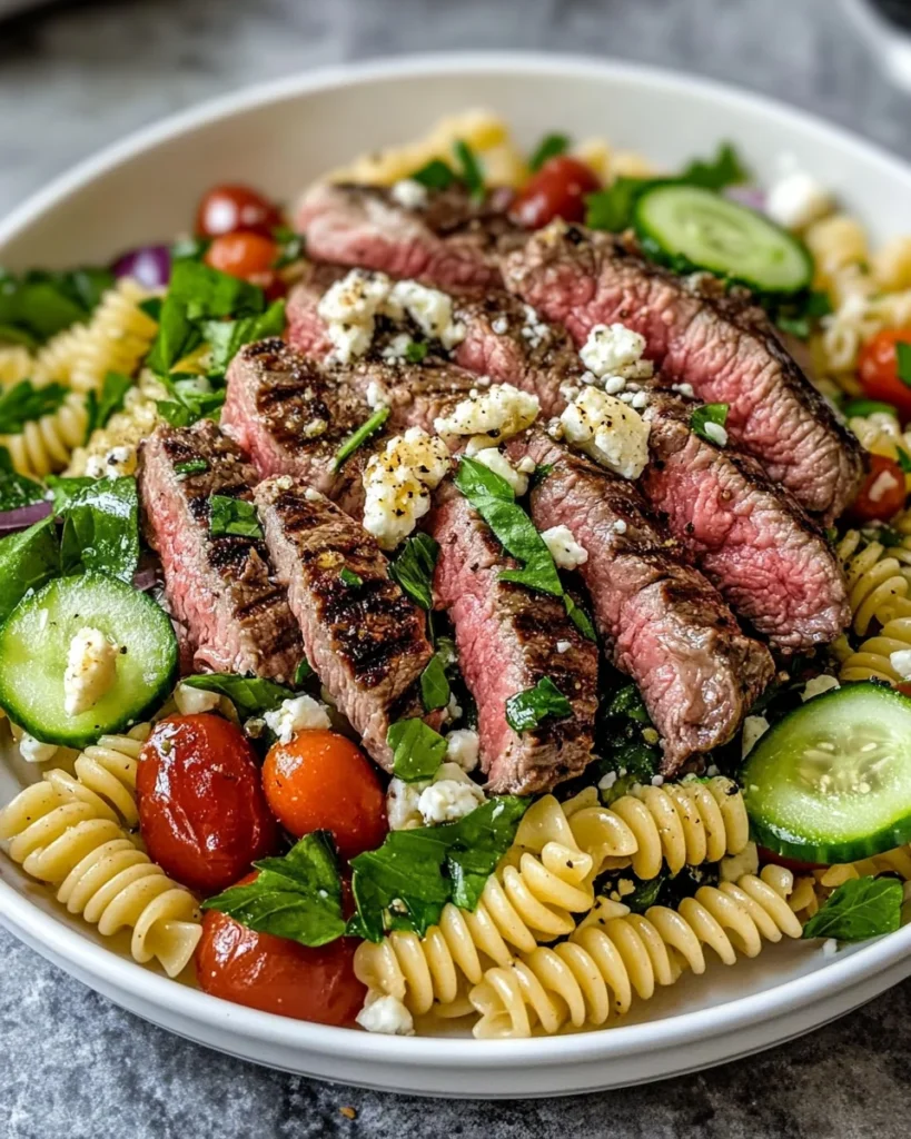 A refreshing and hearty steak pasta salad perfect for summer gatherings.