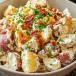 Steakhouse Potato Salad Loaded is a creamy, flavorful side dish packed with red potatoes, crispy bacon, cheddar cheese, and a zesty dressing, perfect for barbecues or gatherings.