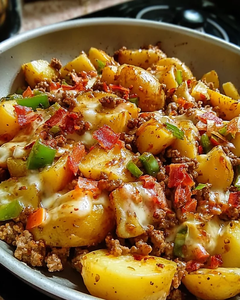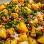 Start by bringing a pot of salted water to a boil. Toss in your cubed potatoes and let them simmer for about 5–7 minutes. We want them just tender, not mushy!