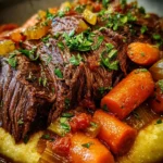 Once the cooking time is up, take the pot off the heat. Transfer the roast to a cutting board and let it rest for 10 minutes. This resting time is crucial; it helps the juices redistribute, keeping the beef super tender. When you’re ready, slice or shred the beef using two forks. Return the shredded beef to the delicious sauce, stirring it in to coat thoroughly. Serve hot over creamy polenta, mashed potatoes, or alongside thick slices of crusty bread. Don’t forget to garnish with freshly chopped parsley and a sprinkle of Parmesan cheese for that authentic touch!