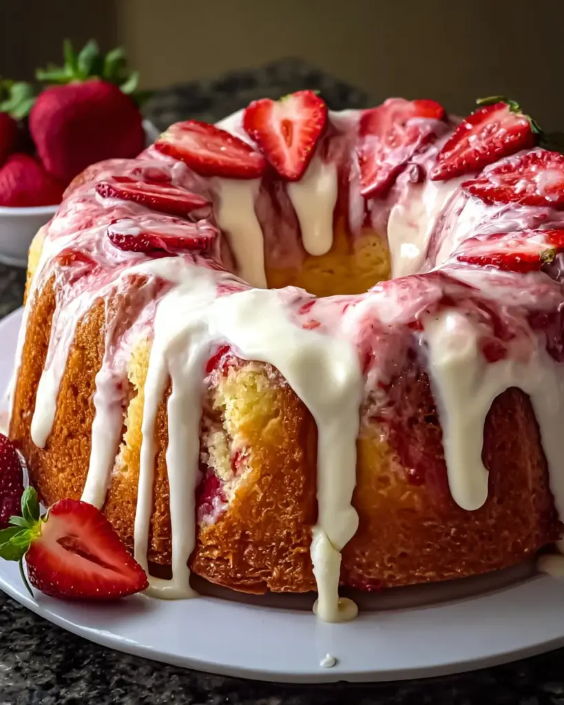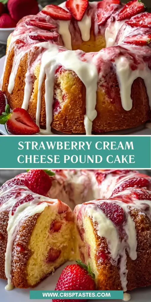 This Strawberry Cream Cheese Pound Cake is more than just a dessert; it’s a celebration of flavors that brings joy to any gathering. Each slice is a delightful blend of moist cake and fresh strawberries, topped with a luscious glaze that feels like a warm embrace. Baking this cake not only fills your kitchen with a heavenly aroma but also creates lasting memories with family and friends. Whether it’s a cozy afternoon tea or a festive celebration, this cake will undoubtedly steal the show and hearts alike. Dive in and savor the sweetness of life!