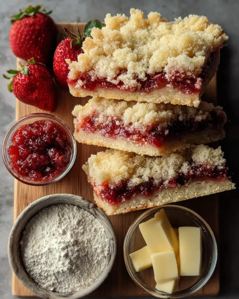 Gathering the right ingredients is the first step to crafting your Strawberry Crumble Buttery Bars. Here’s what you will need: