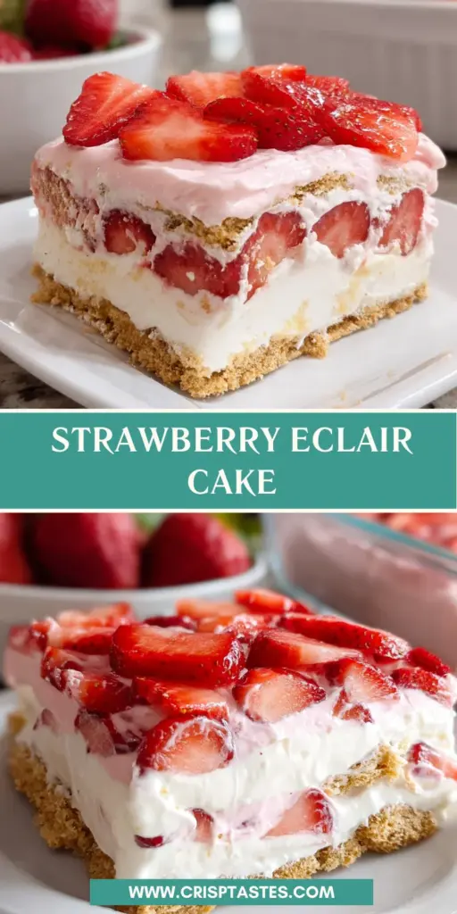 Creating this Strawberry Eclair Cake has truly been a delightful journey for me, and I can’t wait for you to experience the same joy. Every layer holds a sweet surprise, inviting each member of your family to dig in with a smile. There’s something incredibly satisfying about serving a dessert that’s not only easy to make but also bursting with flavor and freshness. So, don’t hesitate—gather those ingredients, let your creativity flow, and enjoy the happy faces around the table! This cake is more than a treat; it’s a new tradition waiting to happen in your home.