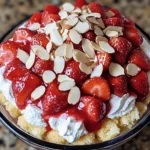 Gathering the right ingredients for your Strawberry Heaven on Earth Cake is key to creating that delightful experience. You’ll need instant vanilla pudding, which adds that creamy sweetness. Whole milk and sour cream or Greek yogurt provide richness; I often opt for Greek yogurt for a healthier twist. Of course, the star is the angel food cake, light and airy, creating the perfect base. Don’t forget the strawberry pie filling for the fruitiness! Topping it all off, Cool Whip gives that fluffy finish, and for a crunchy touch, slivered almonds add a delightful sprinkle. Check below for exact quantities, which are printable for your convenience!