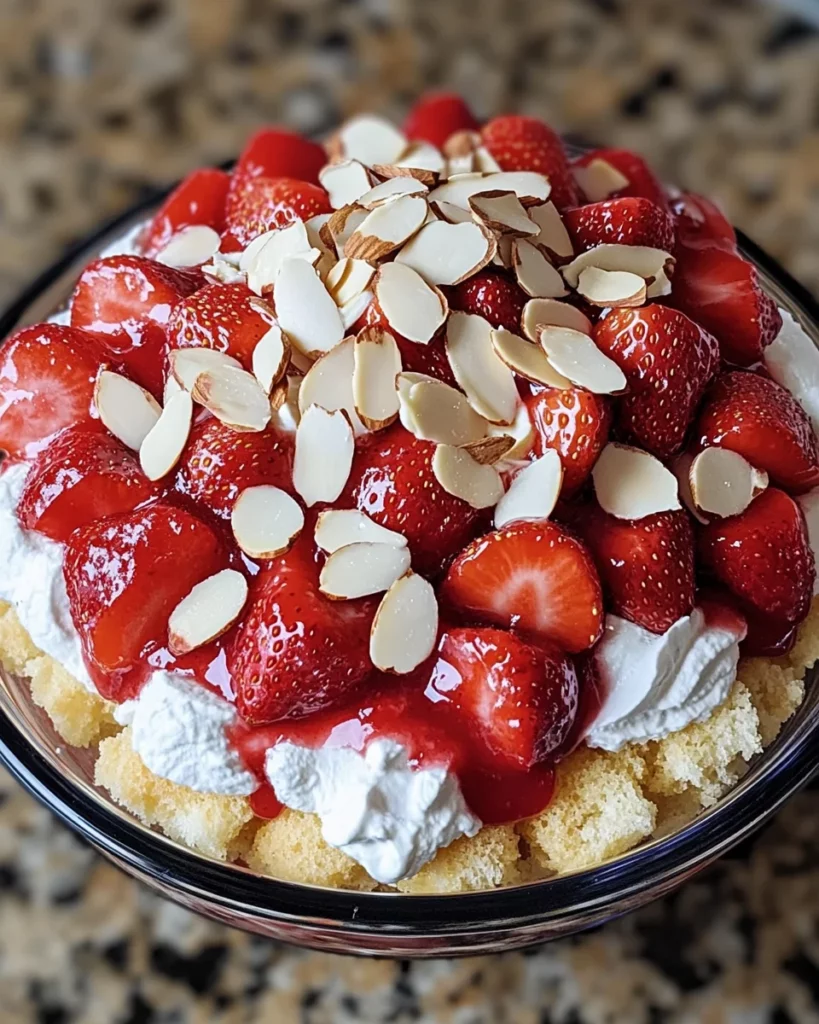 Gathering the right ingredients for your Strawberry Heaven on Earth Cake is key to creating that delightful experience. You’ll need instant vanilla pudding, which adds that creamy sweetness. Whole milk and sour cream or Greek yogurt provide richness; I often opt for Greek yogurt for a healthier twist. Of course, the star is the angel food cake, light and airy, creating the perfect base. Don’t forget the strawberry pie filling for the fruitiness! Topping it all off, Cool Whip gives that fluffy finish, and for a crunchy touch, slivered almonds add a delightful sprinkle. Check below for exact quantities, which are printable for your convenience!