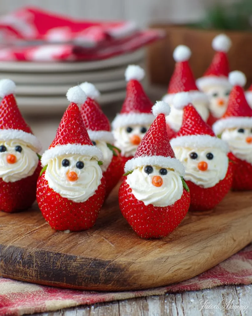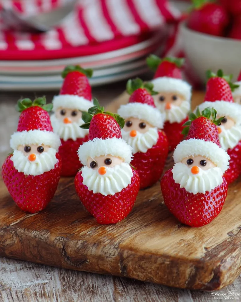 - Pair Strawberry Santas with a refreshing glass of sparkling water or a festive punch for a delightful contrast!