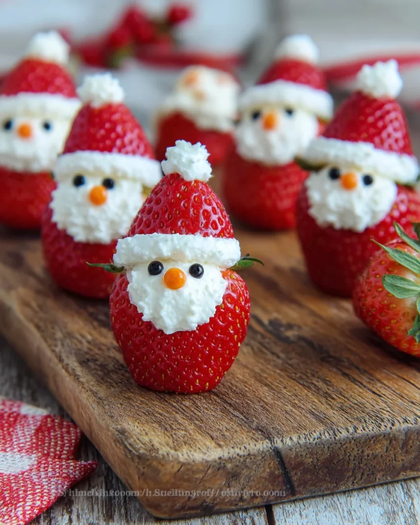 - Pair Strawberry Santas with a refreshing glass of sparkling water or a festive punch for a delightful contrast!