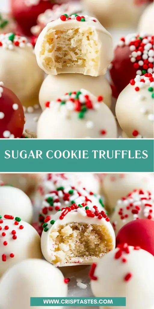 Creating these Sugar Cookie Truffles is not just about indulging in a delicious treat; it’s about sharing warmth and joy with family and friends. With each bite, you’ll savor the delightful combination of flavors that remind you of home. Plus, their simplicity—both in prep and enjoyment—makes them a go-to for life’s hectic moments. Whether you’re celebrating, unwinding after a busy day, or brightening someone’s day, these truffles make everything a little sweeter. So roll up your sleeves, dive into this tasty adventure, and let the smiles and laughter roll in as you share these delightful bites!