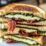This Sun-Dried Tomato Bacon Pesto Grilled Cheese is a simple yet gourmet twist on a classic. With crispy bread, gooey cheese, smoky bacon, and the flavor-packed combo of pesto and sun-dried tomatoes, this sandwich is pure comfort food perfection.