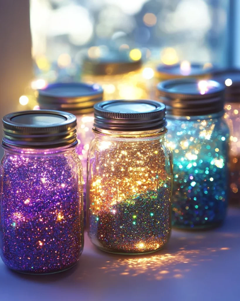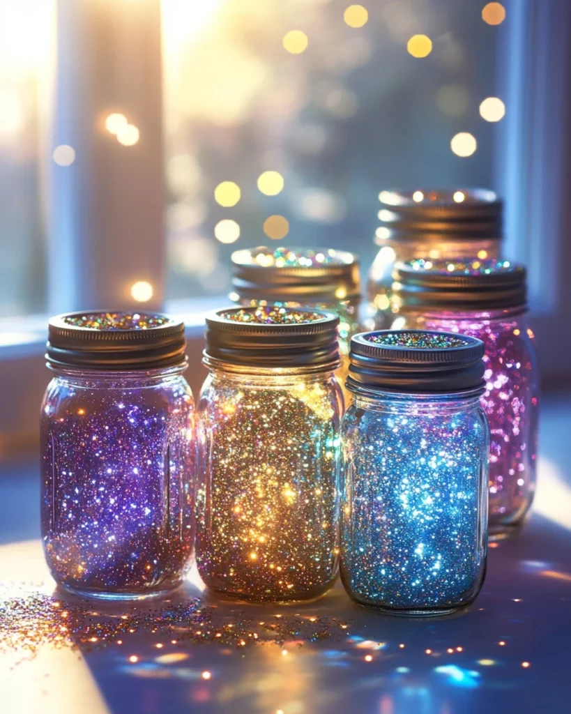 - Create themed jars using seasonal glitter—red and green for winter, pastels for spring, etc.