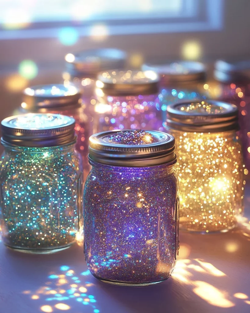 - Create themed jars using seasonal glitter—red and green for winter, pastels for spring, etc.