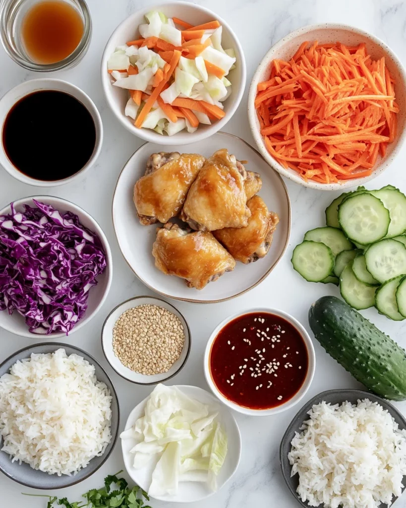 Let’s gather our ingredients for these delightful sweet chili chicken rice bowls with chicken thighs! Each component plays a vital role in creating a dish that’s not only delicious but also visually appealing.