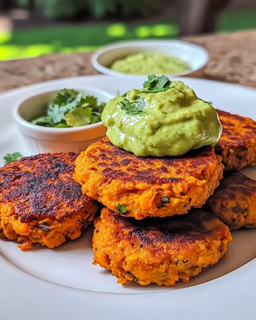 Introduction to Sweet Potato Patties with Red Lentils & Creamy Avocado Cilantro Sauce