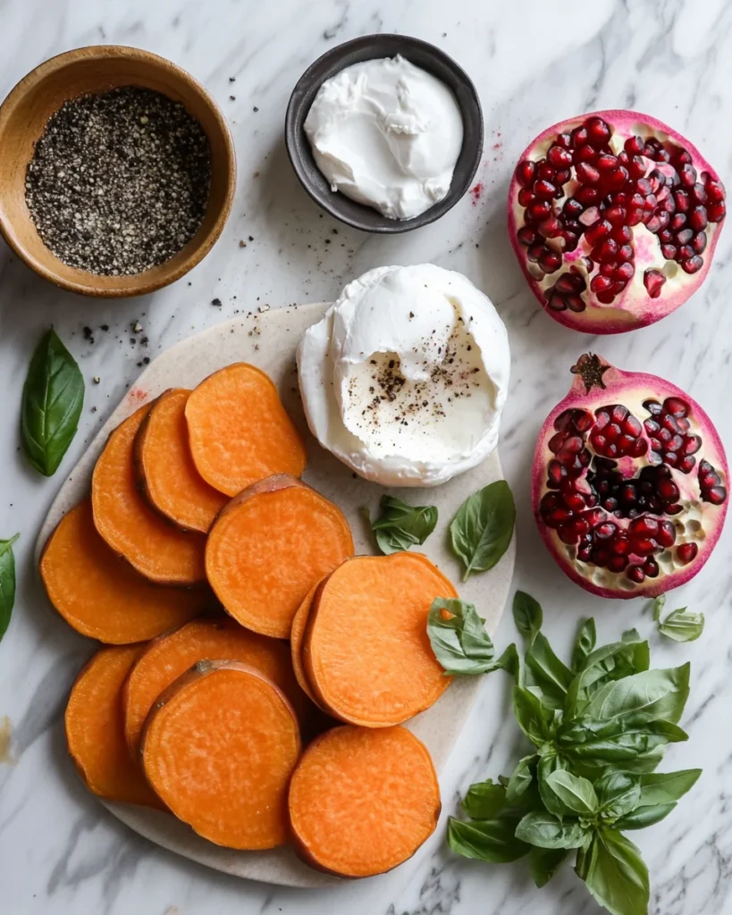 Ingredients for Sweet Potato Toast with Burrata and Pomegranate