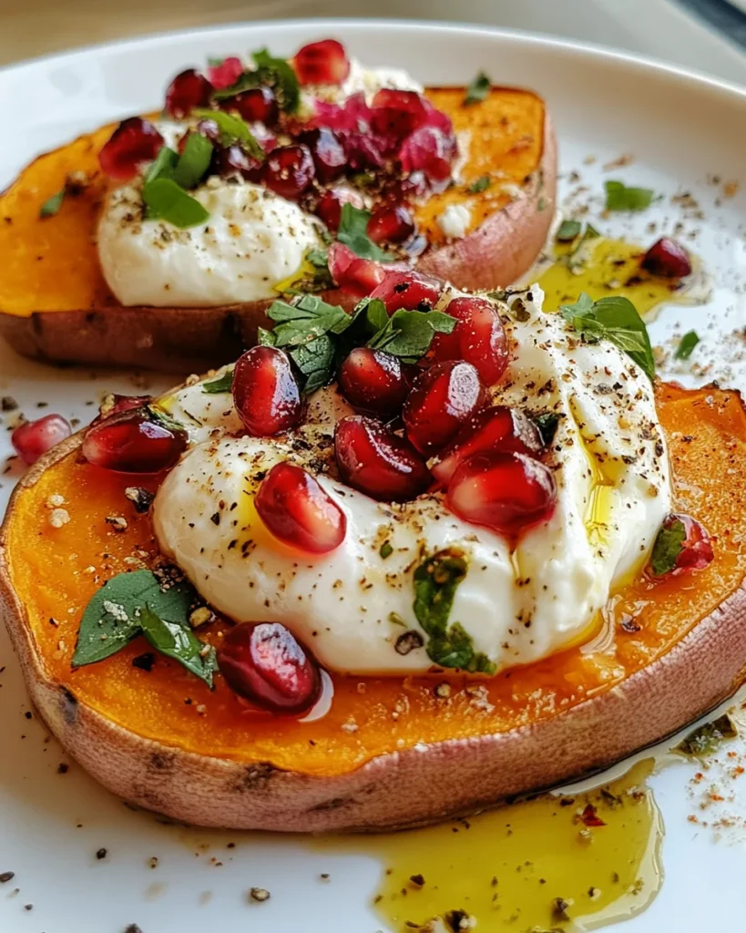 This dish is a celebration of flavors and textures. The creamy burrata cheese pairs perfectly with the earthy sweetness of roasted sweet potatoes, while the pomegranate seeds add a burst of freshness and a pop of color. It’s like a little piece of art on your plate! I remember the first time I made this dish for a gathering. The moment I placed the platter on the table, my friends’ eyes lit up. They couldn’t resist diving in, and the compliments flowed like a fine wine.