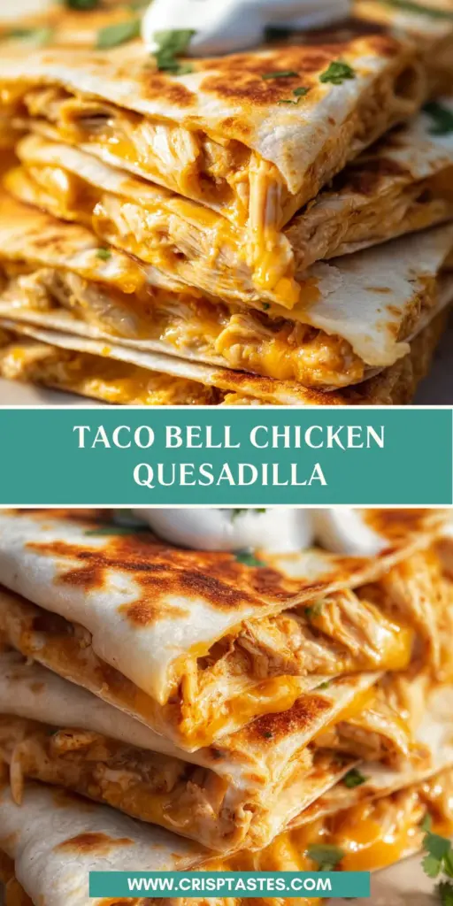 Creating this Taco Bell Chicken Quesadilla is not just about the food; it’s about the joy it brings to your home. Nothing beats the satisfaction of watching your family gather around the table, eager to taste your delicious creation. This dish is perfect for those hectic weekdays, yet fancy enough for family gatherings. Every bite is an explosion of flavor, bringing a bit of Taco Bell magic right into your kitchen. Embrace the ease and delight of this recipe—it just might become your go-to meal for every occasion!