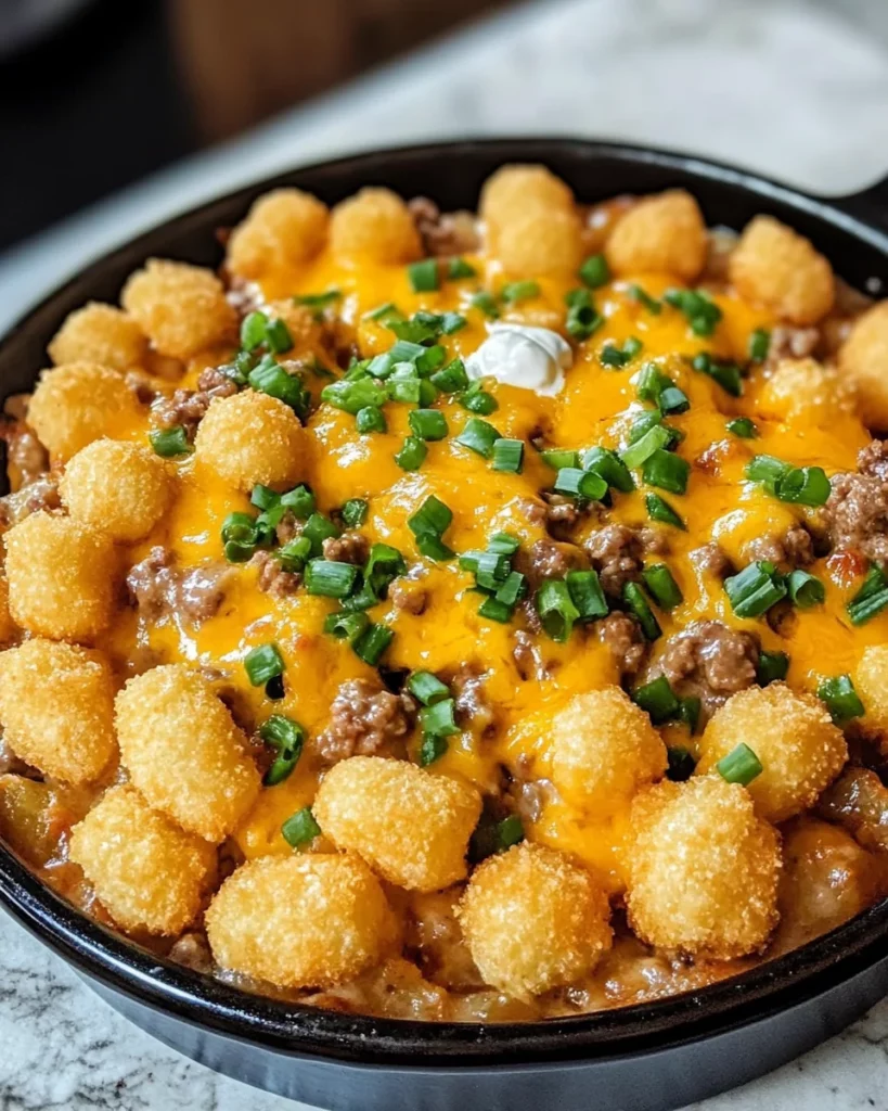 - Low-Carb Version: Replace tater tots with cauliflower tots or a layer of roasted cauliflower for a healthier alternative.