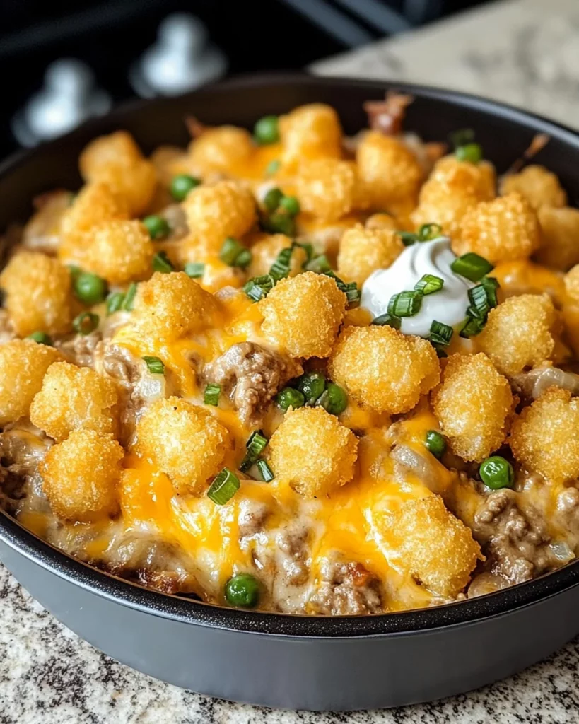 - Low-Carb Version: Replace tater tots with cauliflower tots or a layer of roasted cauliflower for a healthier alternative.