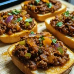 While the sauce simmers, preheat your oven to 425°F (220°C). Arrange your thick slices of Texas toast on a baking tray and stick them in the oven for about 6-8 minutes. You’re aiming for a gorgeous light toast, a perfect platform for our sloppy Joe filling. Remember to create an indent in the center of each slice using the back of a spoon. This little trick will hold all that savory goodness beautifully, making each bite absolutely irresistible.