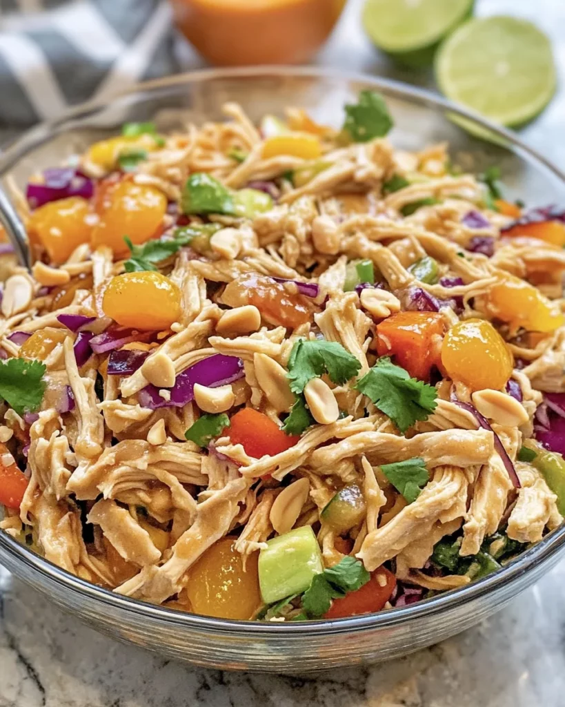 This Thai Chicken Salad has a way of brightening my week, transforming chaotic dinner times into something special. The crunch of fresh veggies, the juicy chicken, and that creamy peanut dressing are a trio I can’t resist. It’s not just food, but a comforting hug on a busy day. With each bite, I can feel the love I’ve poured into creating it. Whether it’s a family dinner or a quick lunch, this salad never fails to please. Trust me, once you make it, you’ll find yourself reaching for this recipe time and time again!