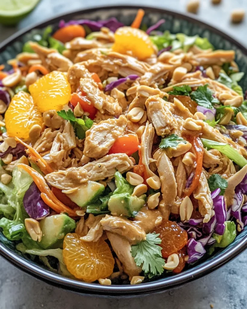 A delicious and refreshing Thai Chicken Salad with a creamy peanut dressing.
