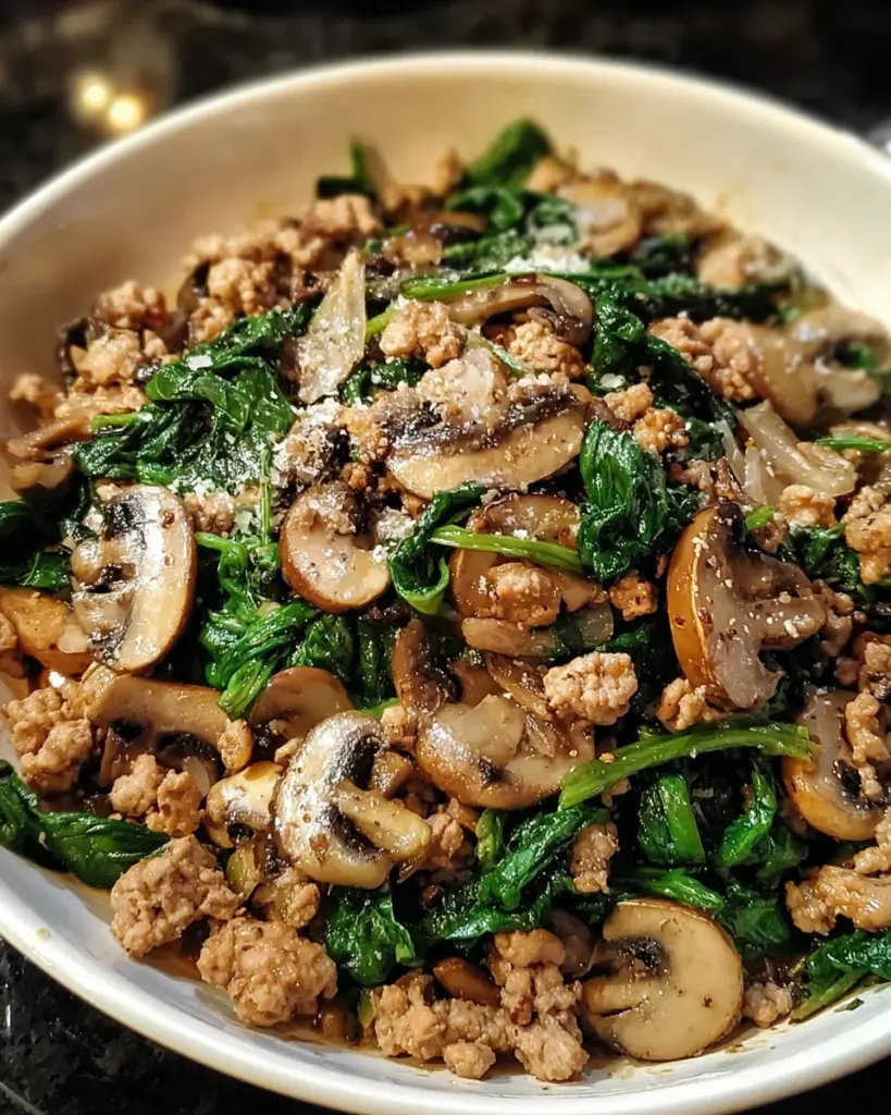 This Turkey Spinach Mushroom Skillet is not just a meal; it’s a comforting hug on a plate! It comes together quickly, ready in just 30 minutes, perfect for busy nights. The savory flavors of ground turkey, earthy mushrooms, and fresh spinach create a satisfying dinner that’s healthy and hearty. Plus, it’s one pan! Fewer dishes mean more time to sit and savor your meal with family or catch that favorite show!