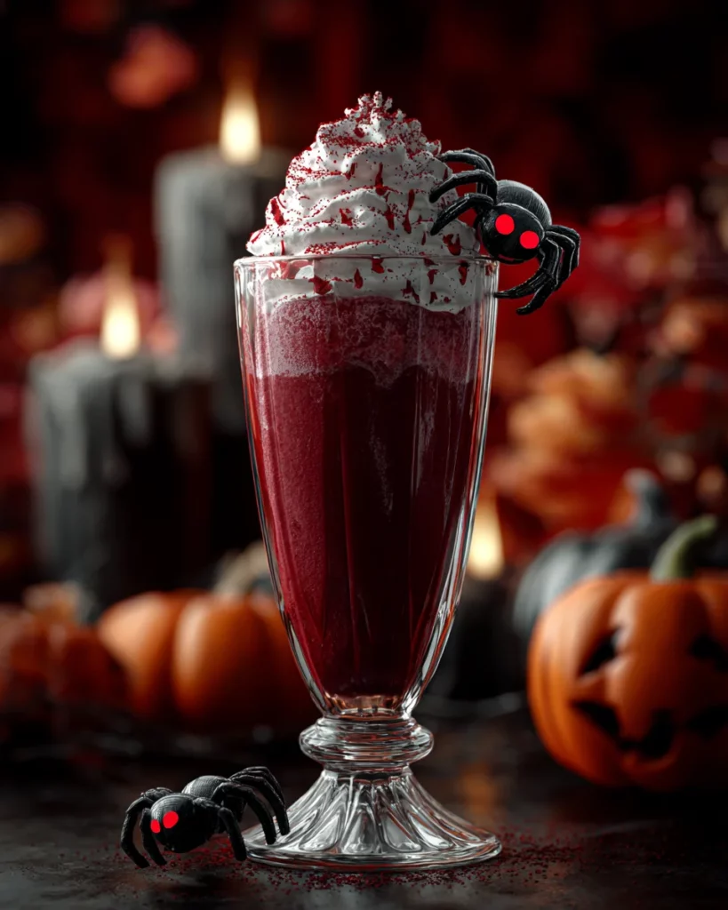 A delicious and unique milkshake that combines the richness of vanilla ice cream with the boldness of red wine, perfect for a spooky treat.