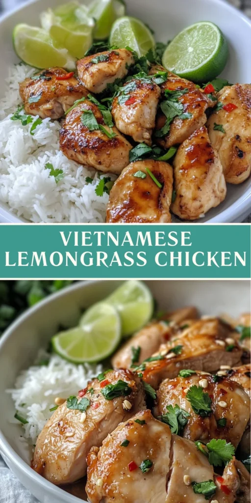 A flavorful Vietnamese dish featuring tender chicken marinated in lemongrass, garlic, and fish sauce, perfect for weeknight dinners or special occasions.