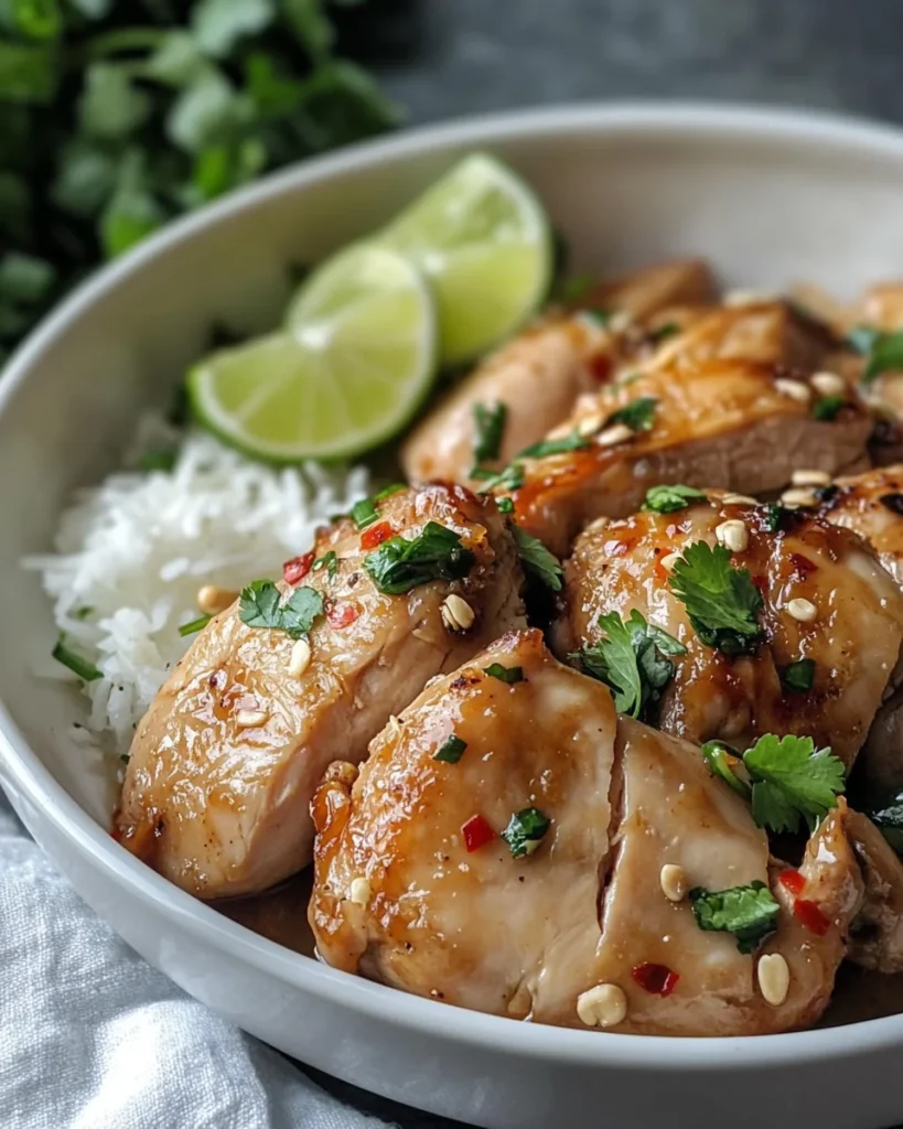 - With Noodles: Serve the chicken over rice noodles or vermicelli for a delicious noodle bowl. Drizzle with extra lime juice and a sprinkle of crushed peanuts for a burst of flavor.