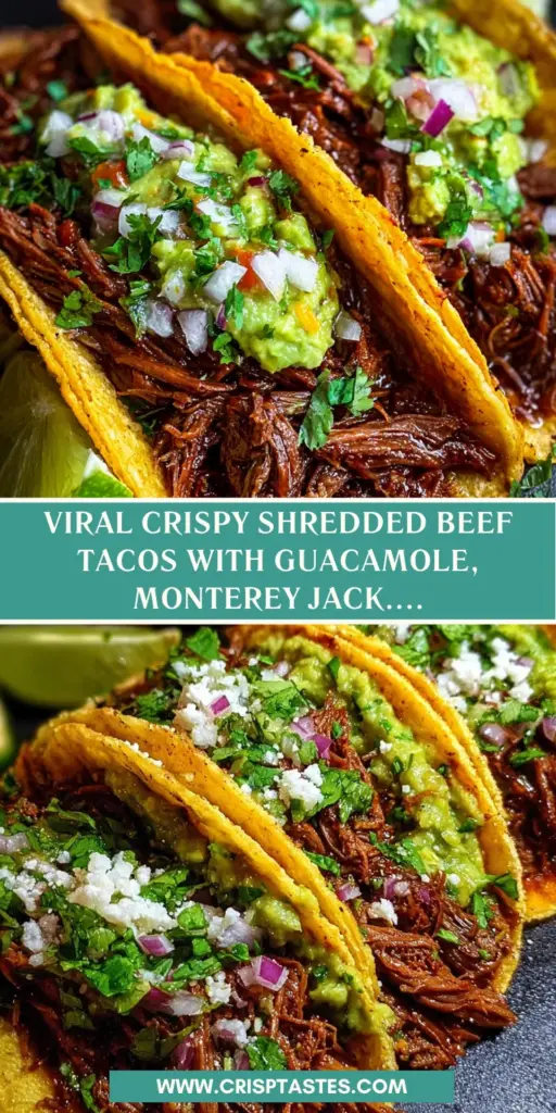 In the kitchen, we often seek that perfect blend of flavor, comfort, and connection. These Viral Crispy Shredded Beef Tacos with Guacamole, Monterey Jack & Lime Zest embody all that and more. Each bite takes you on a delightful journey, bringing families together and making weeknight meals feel special. The joy of sharing these tacos isn’t just about the taste; it’s the laughter and stories exchanged around the table that truly elevate the experience. Trust me, once you dive into this recipe, it will quickly become a cherished favorite in your home!