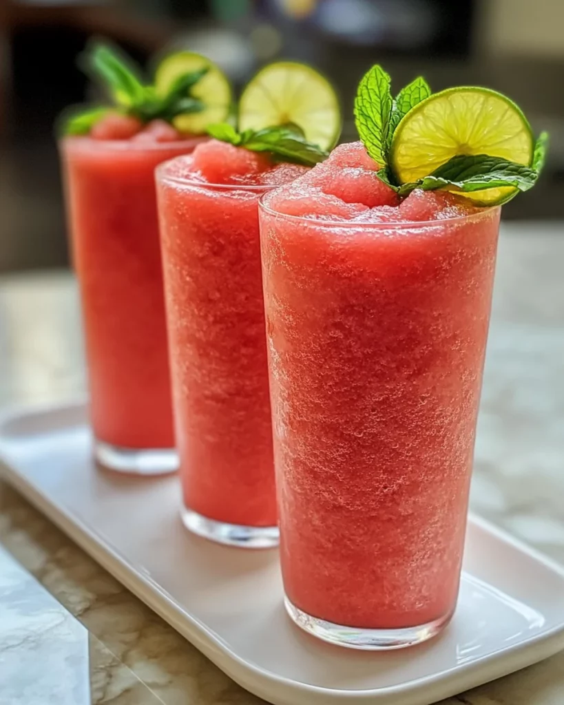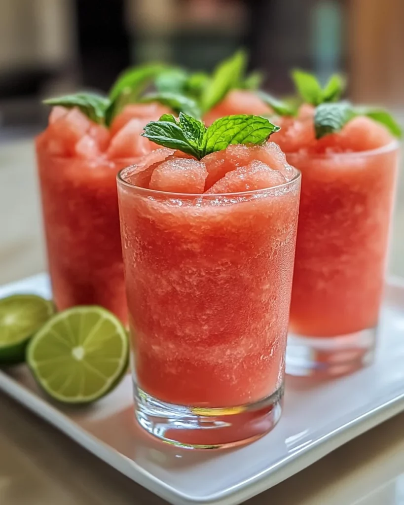 A refreshing and easy-to-make slushie using frozen watermelon, perfect for hot days.