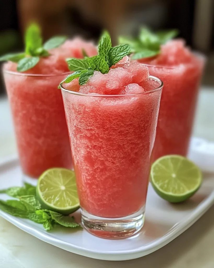 A refreshing and easy-to-make slushie using frozen watermelon, perfect for hot days.
