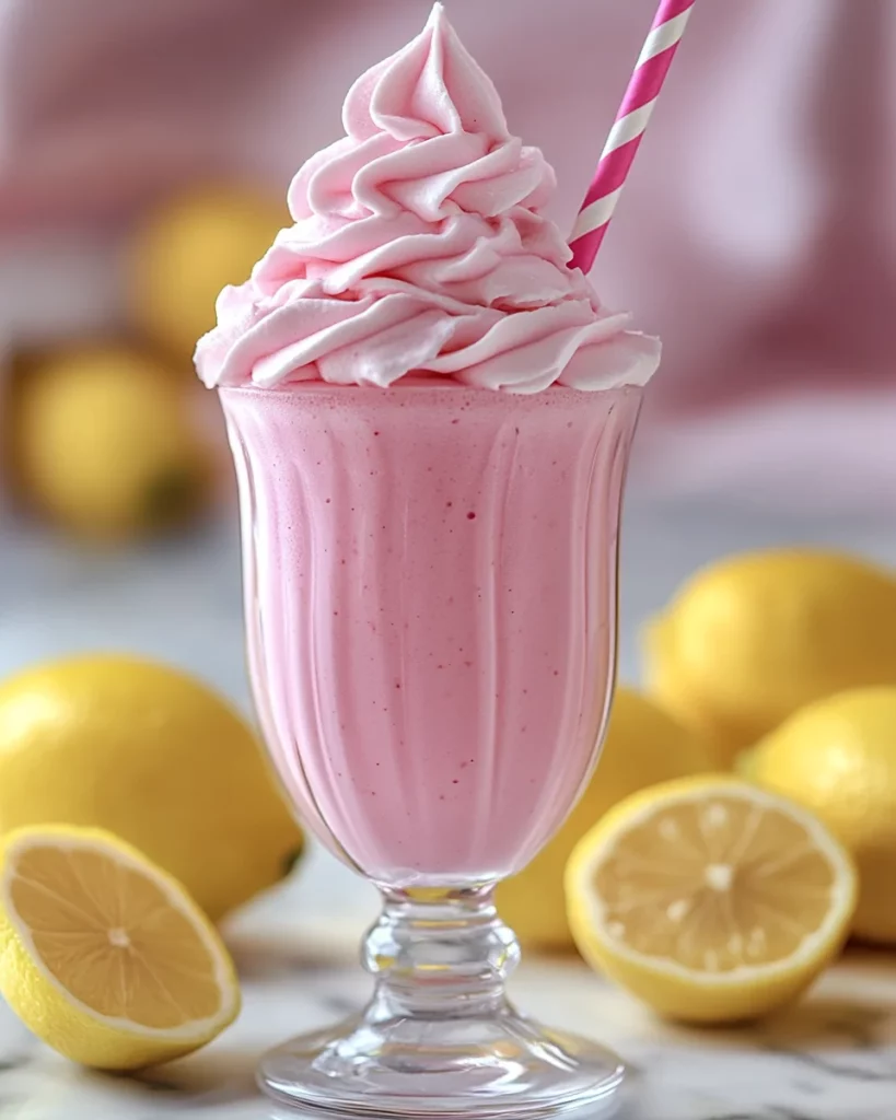 A creamy and refreshing beverage that combines the delicious flavors of pink lemonade with a whipped texture, perfect for summer.