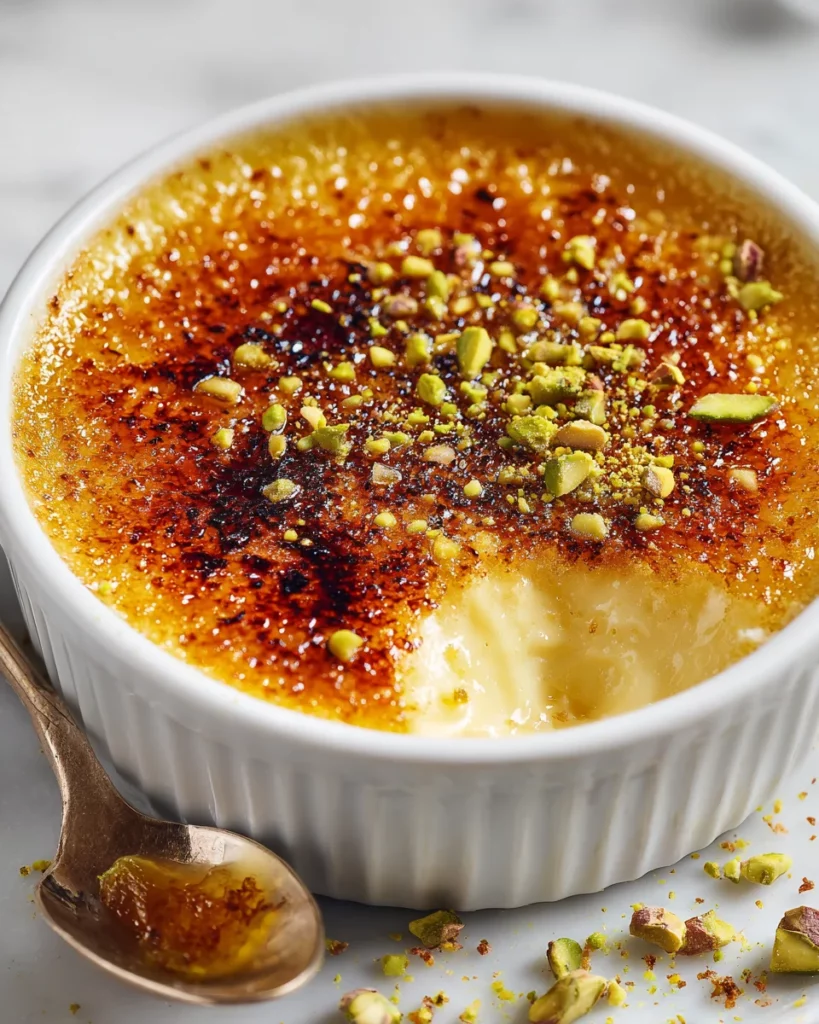 - Elevated Plating: Serve the brûlée on small dessert plates with a polished silver spoon and a scattering of additional crushed pistachios around the ramekin for visual contrast. A sprig of fresh lavender or a single edible flower on the side adds a beautiful finishing touch.